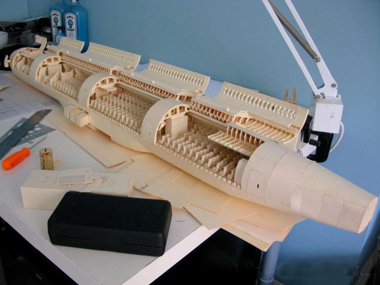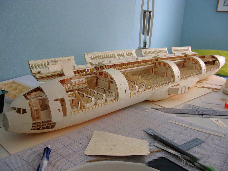其實(shí)網(wǎng)上照片這只飛機(jī)的整體輪廓的呈現(xiàn),因此關(guān)于模型內(nèi)部的細(xì)節(jié)藝術(shù)家說,還是要發(fā)揮自己的想像力,才能完成,因?yàn)樘彪s,太細(xì)致了。但即使在目前的狀態(tài)下,飛機(jī)模型也是一個奇跡,尤其是飛機(jī)的復(fù)雜引擎。