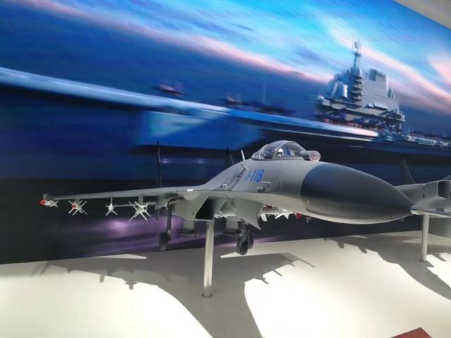 航母旁是1:5殲11B模型以及1:5殲轟7E(飛豹)模型