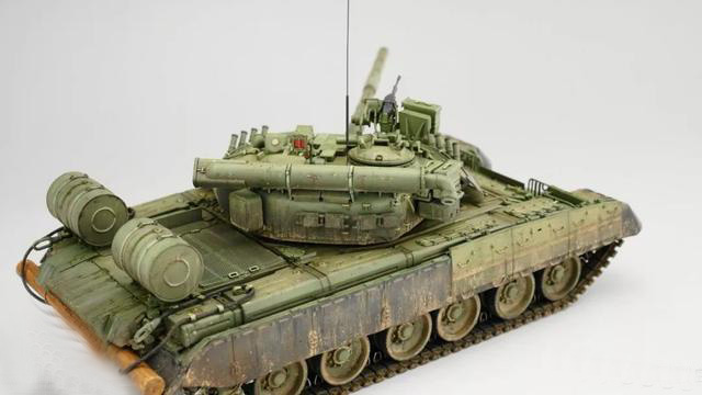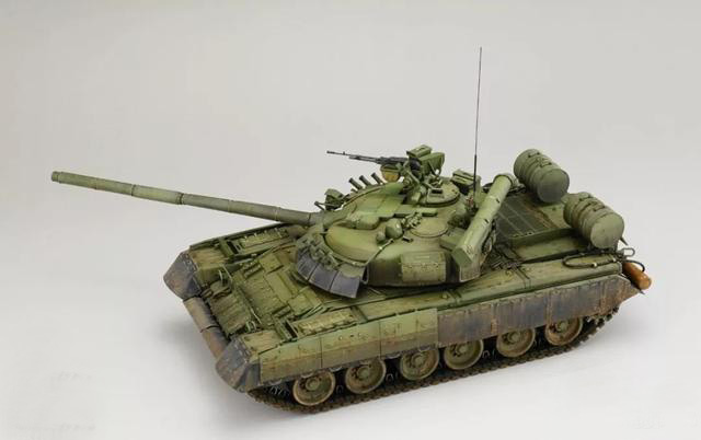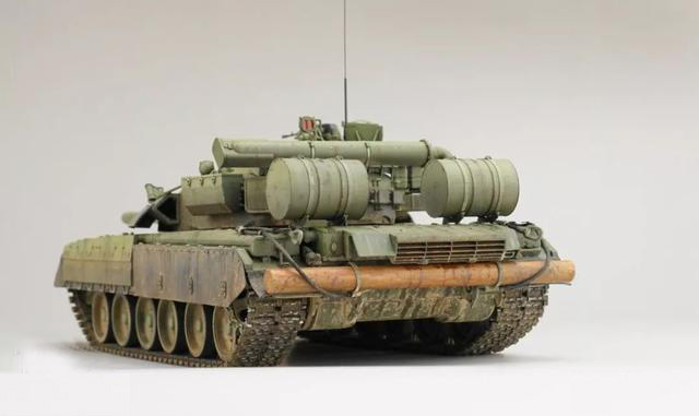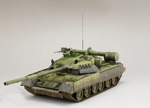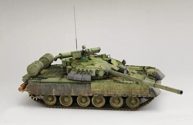 T-80UD是T-80U的簡配版,T-80U過高的維護費用和消耗,在最初的時候由于軍方內有高層支持,所以一直處于邊生產邊服役的狀態,但是后期由于高層領導的下馬,T-80U被打入冷宮,隨后生產線上修改了生產方案,換上了柴油機和低配的設備,就成為了80UD小號手的板件,題材獨此一家有恃無恐。